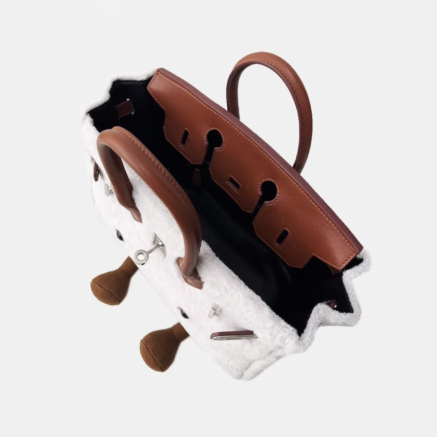 Faux Fur Jelly Cat Tote Bag In Leather