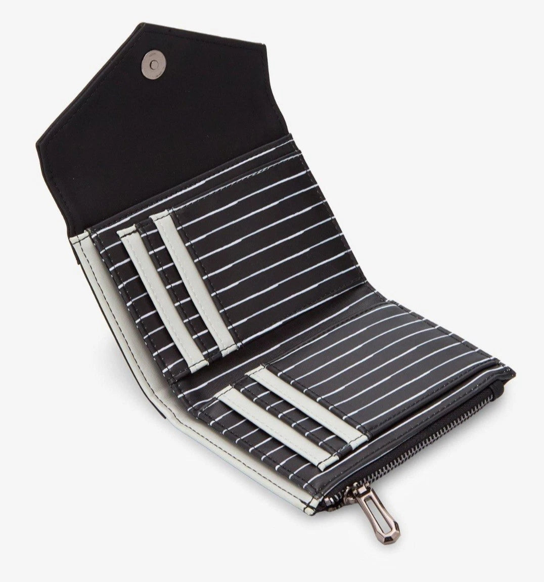 Prep for spooky season with this Nightmare Before Christmas crossbody bag! Featuring velvet, embroidered, and embossed details of Halloween Town residents and icons from the film, the front flap of this bag includes a metal bat charm. With a removable multi-charm keychain, a top handle, and a removable crossbody strap, this purse is perfect for fans of the Disney film.