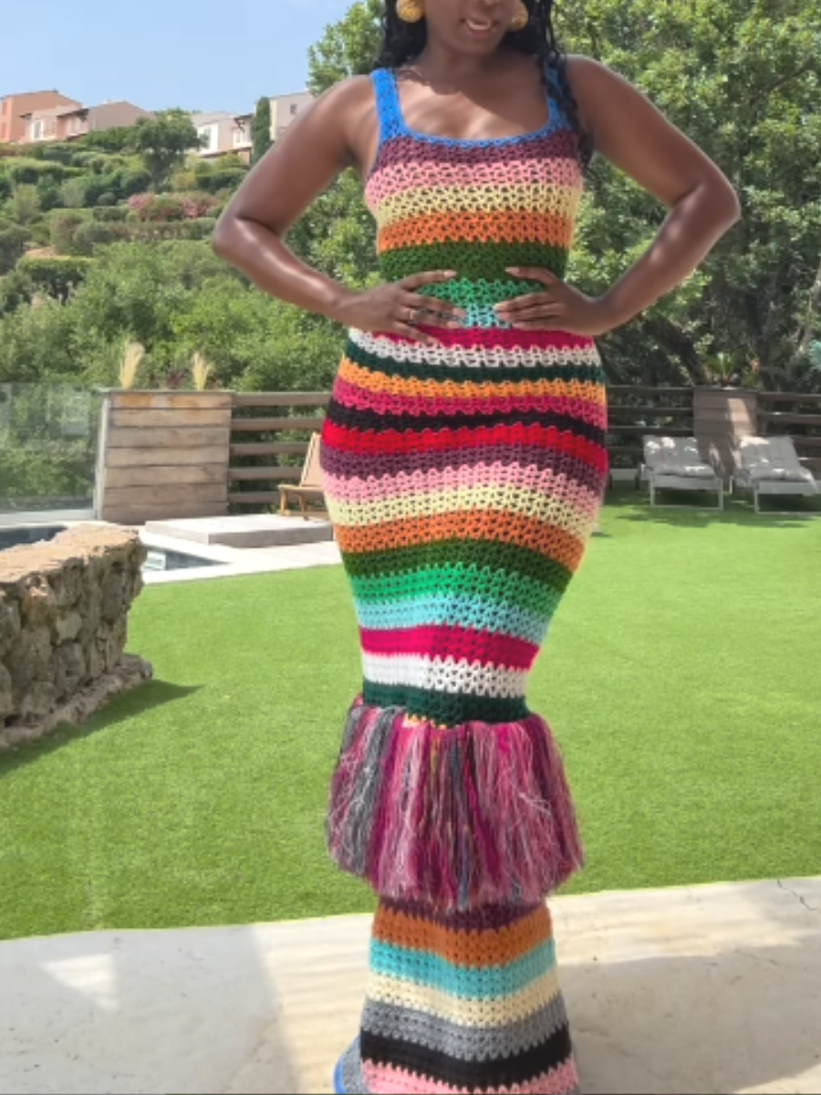 Knitted Tassel Color Sling Dress