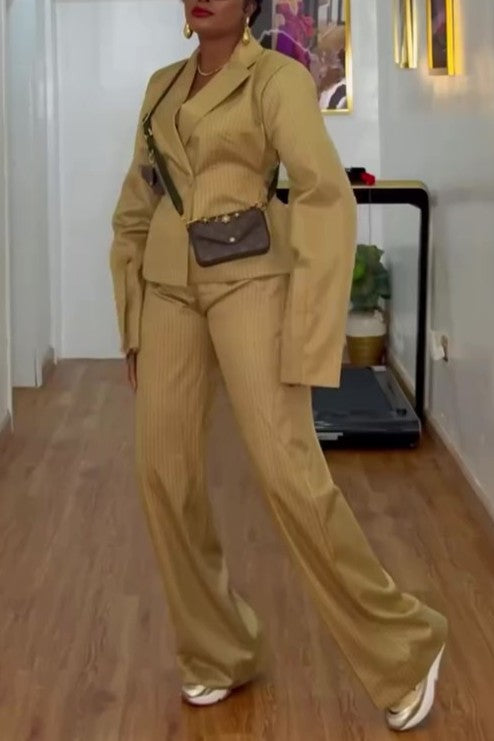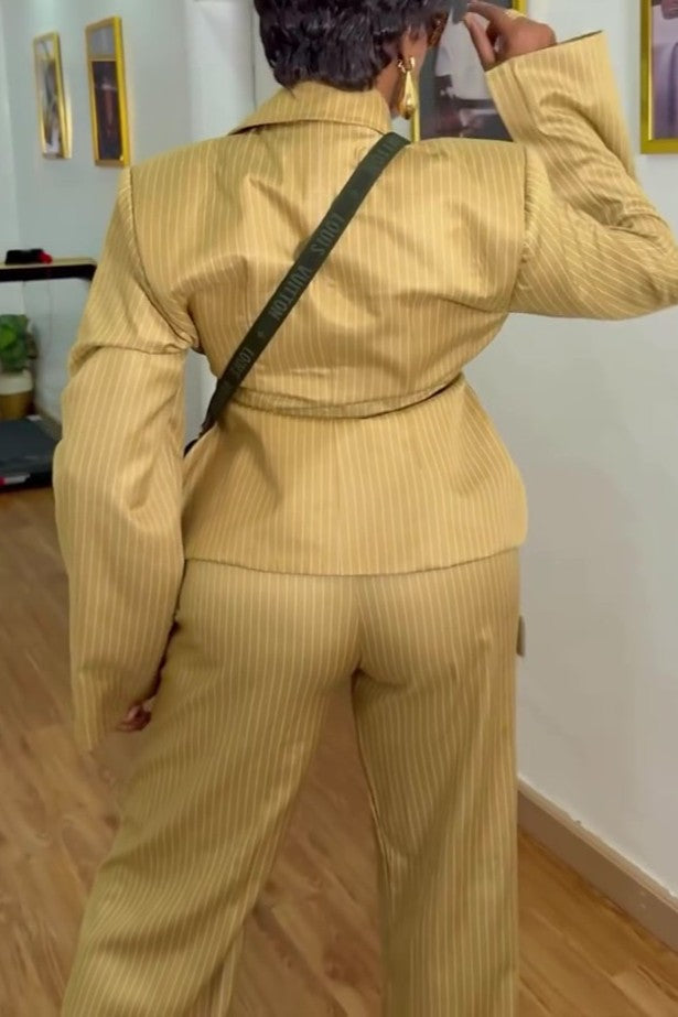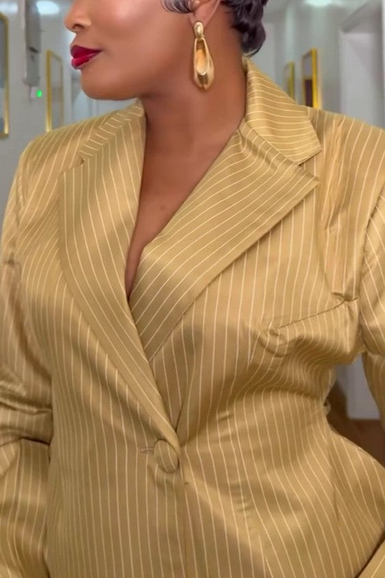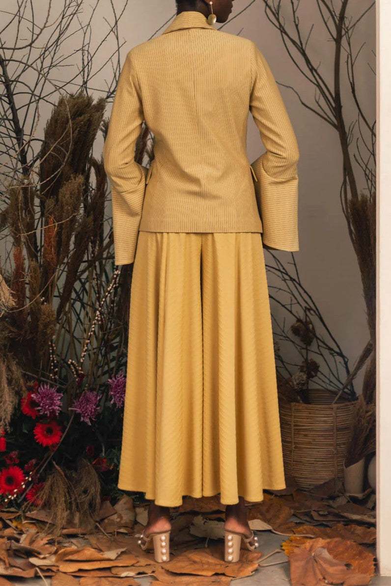 Put out our signature style of co-ordinated sets by mixing street style with elegant off to party looks. The coat is crafted in pinstripe luxury knitted fabric. Pair it up with the pants to complete the most talked about look of the year. The products are sold as separates.