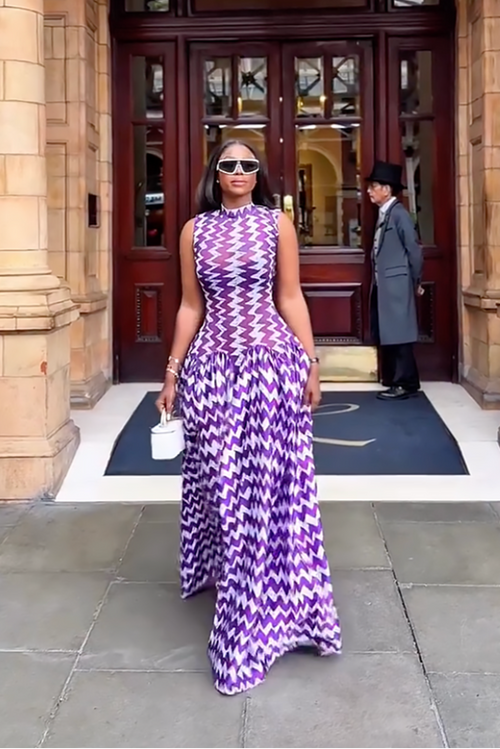 Embrace effortless elegance with this Purple Zigzag Print Maxi Dress, a striking piece