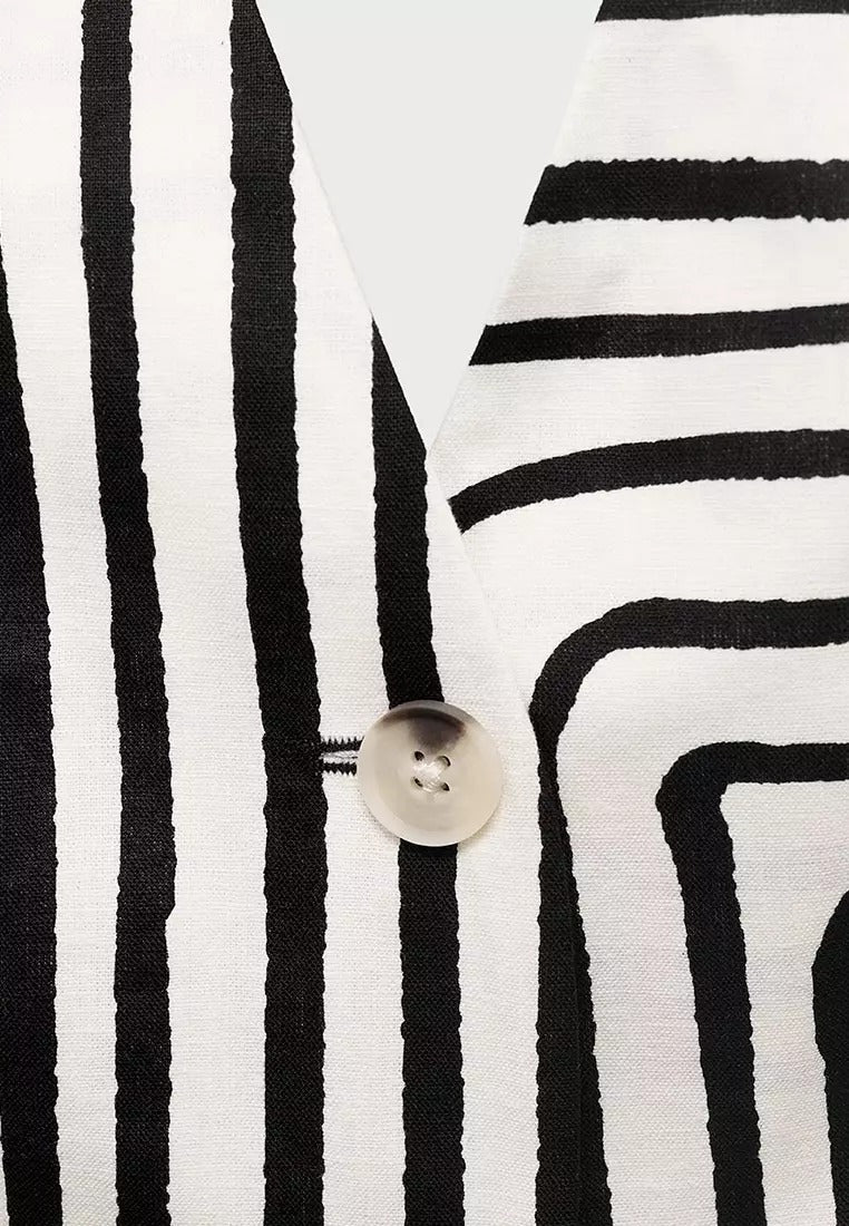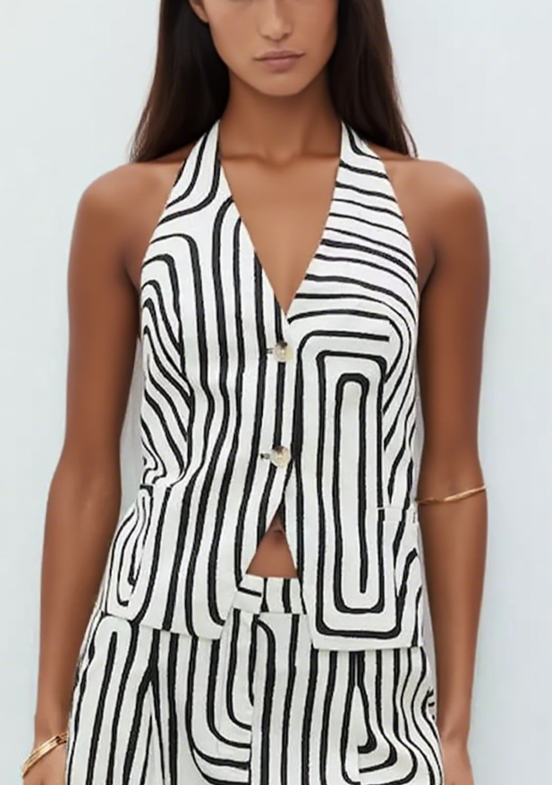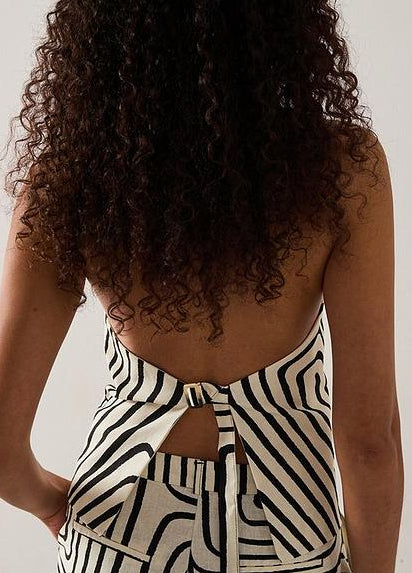 Unleash your untamed side in this head-turning backless tank, where deep V-neckline meets animalistic zebra stripes on ultra-breathable linen-cotton blend. The adjustable back tie and open-back design ensure maximum airflow, while the 55% linen 45% cotton construction gets softer with every wear.