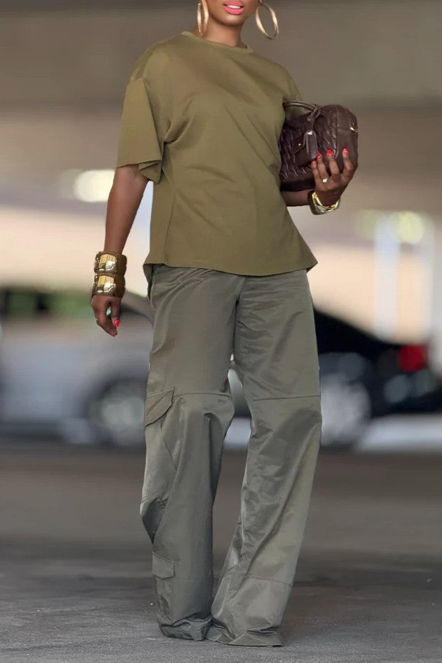 Premium tee in olive and white